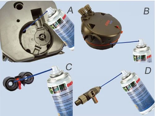 De EHEIM onderhoudsspray is op siliconenbasis, waterneutraal, CFK-vrij, bevat geen oplosmiddelen of oliën en is vrij van milieutoxische stoffen. Geleverd met een spuitbuis om zelfs moeilijk bereikbare gebieden te bereiken.