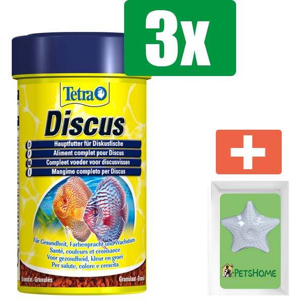 Tetra Discus granulaat 100 ml – 3 stuks – Vissenvoer – Aquarium – Inclusief PetsHome Zuurstofsteen