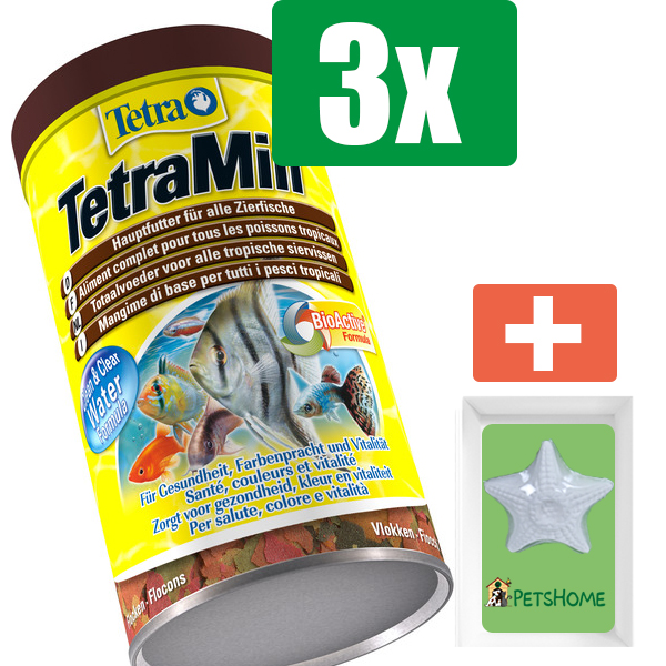 Tetra Tetramin bio active vlokken 500 ml – 3 stuks – Vissenvoer – Aquarium – Inclusief PetsHome Zuurstofsteen