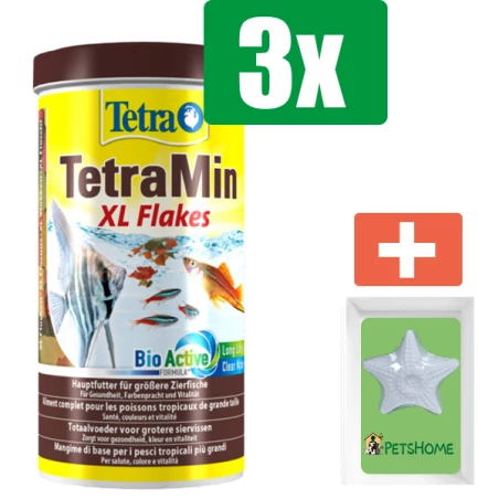 Tetra Tetramin xl bio active vlokken 1 l – 3 stuks – Vissenvoer – Aquarium – Inclusief PetsHome Zuurstofsteen
