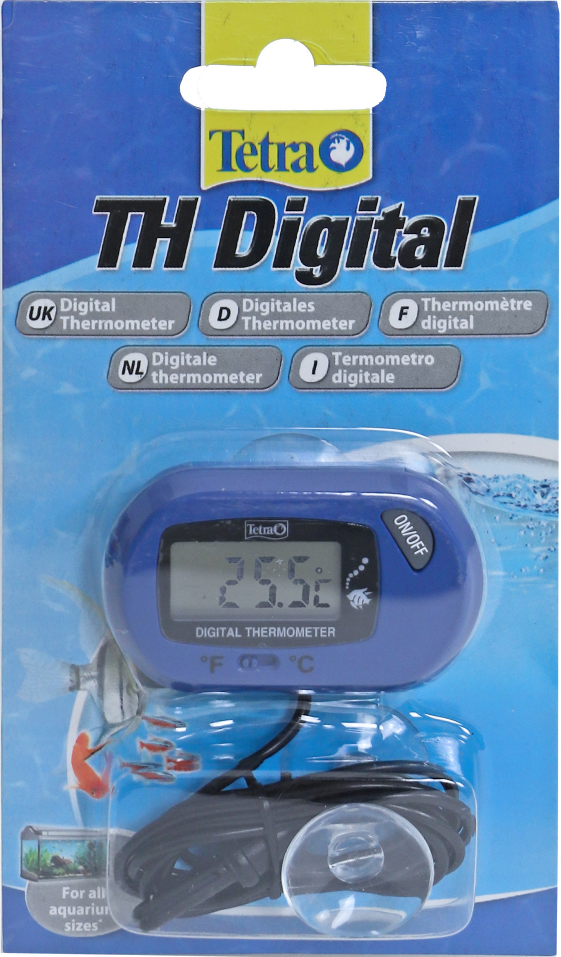 De Tetra digitale thermometer is speciaal ontwikkeld om de watertemperatuur in aquaria nauwkeurig te meten. Plak de thermometer aan de buitenzijde van het aquarium en plaats de temperatuursensor in het aquarium door middel van de bijgeleverde zuignappen. U kunt nu eenvoudig de temperatuur aflezen. Inclusief batterij.