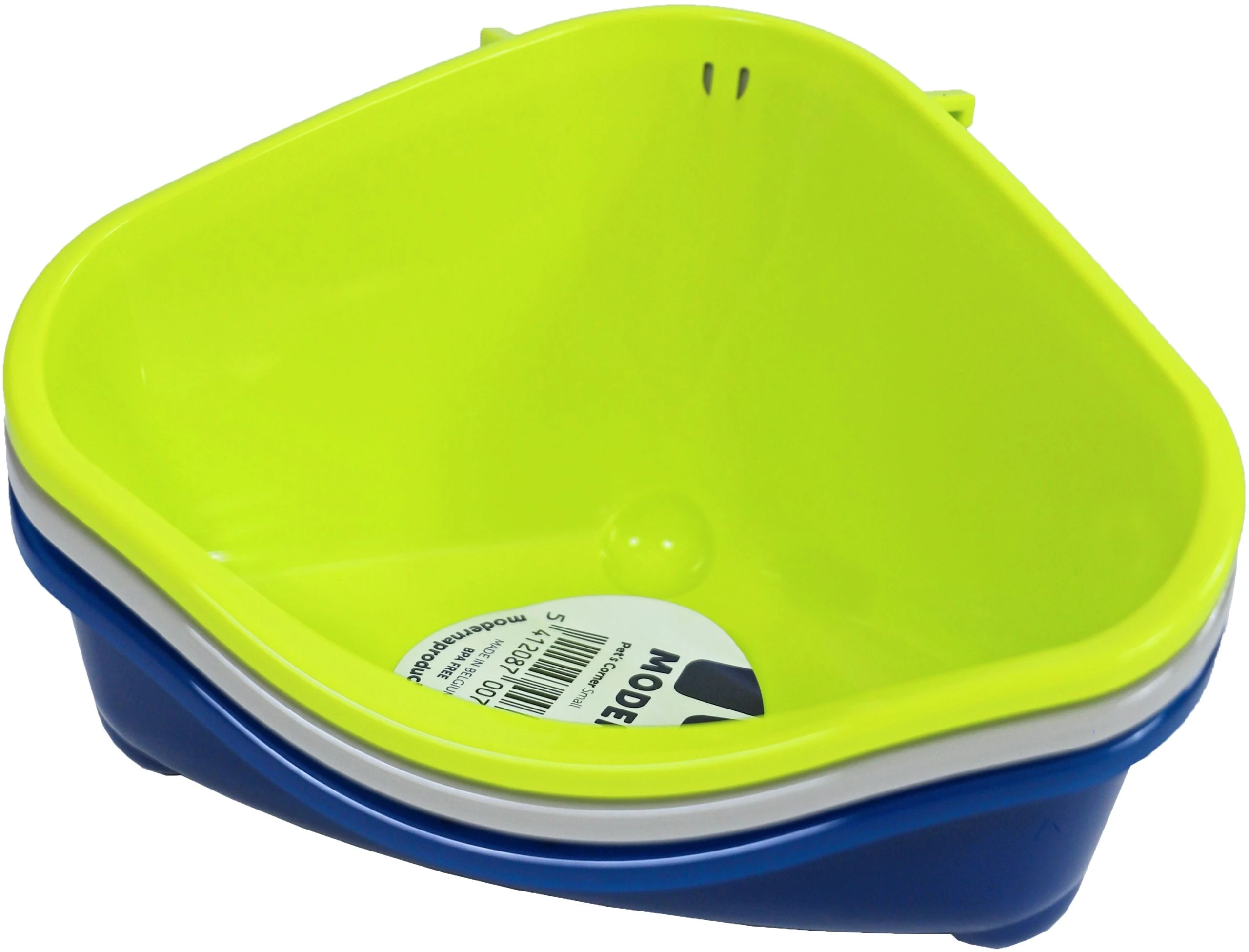 Afmeting: 18,3×12,7×9,6 cm. Het Moderna knaagdiertoilet is een plastic hoektoilet dat geschikt is voor knaagdieren. Het hoektoilet heeft speciale haakjes zodat u het toilet gemakkelijk aan de kooi kunt bevestigen. Het knaagdiertoilet is verkrijgbaar in verschillende maten en kleuren zodat u het goed kunt afstemmen op de grootte van je huisdier.