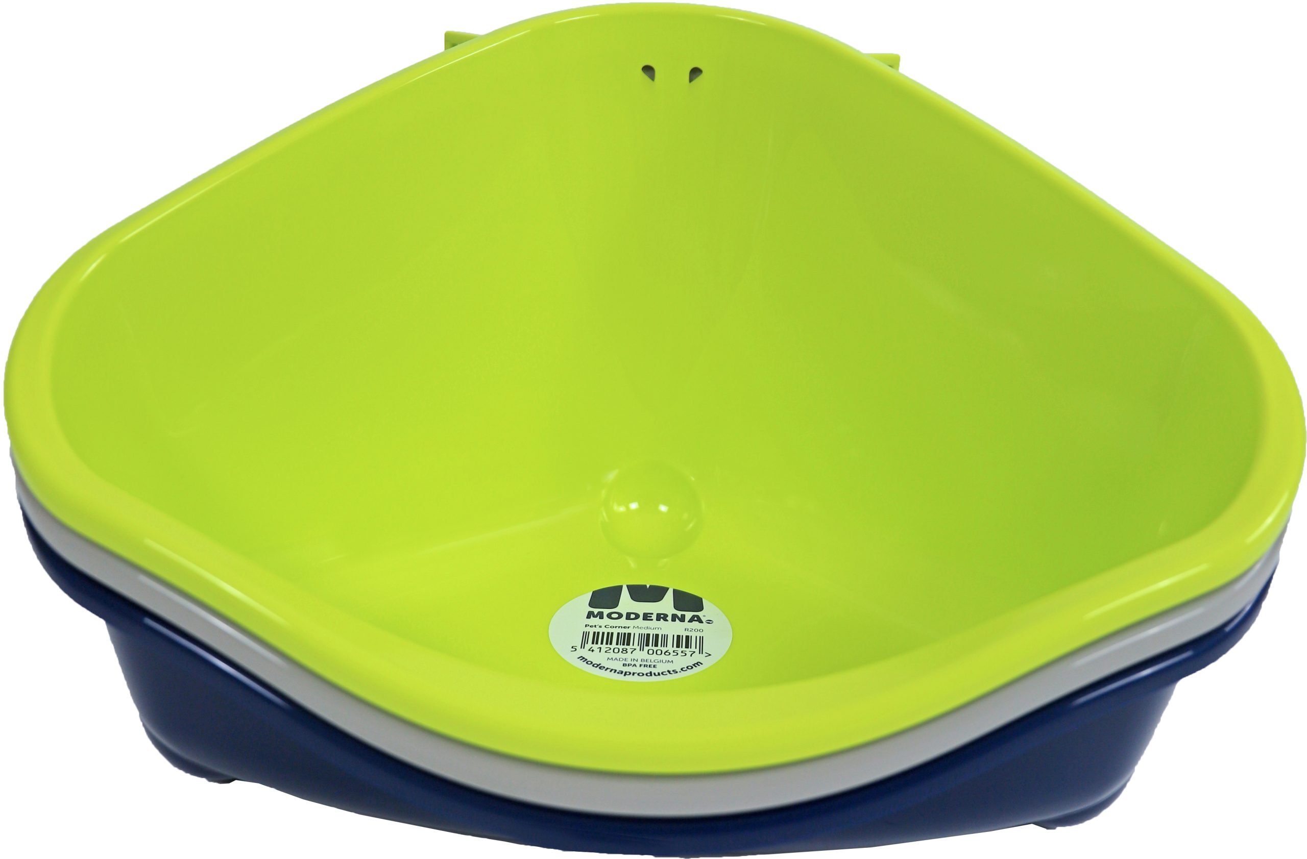 Het Moderna knaagdiertoilet is een plastic hoektoilet dat geschikt is voor knaagdieren. Het hoektoilet heeft speciale haakjes zodat u het toilet gemakkelijk aan de kooi kunt bevestigen. Het knaagdiertoilet is verkrijgbaar in verschillende maten en kleuren zodat u het goed kunt afstemmen op de grootte van je huisdier. Afmeting: 35,5×23,4×19 cm.