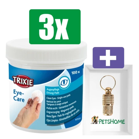 Trixie Eye Care Reinigingspads Voor Ogen – 100 ST – 3 stuks – Inclusief PetsHome Goudkleurige Adreskoker