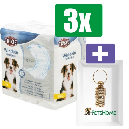 Trixie – Hondenluier – Reu – M/L – 12 ST – 3 Stuks – Inclusief PetsHome Goudkleurige Adreskoker