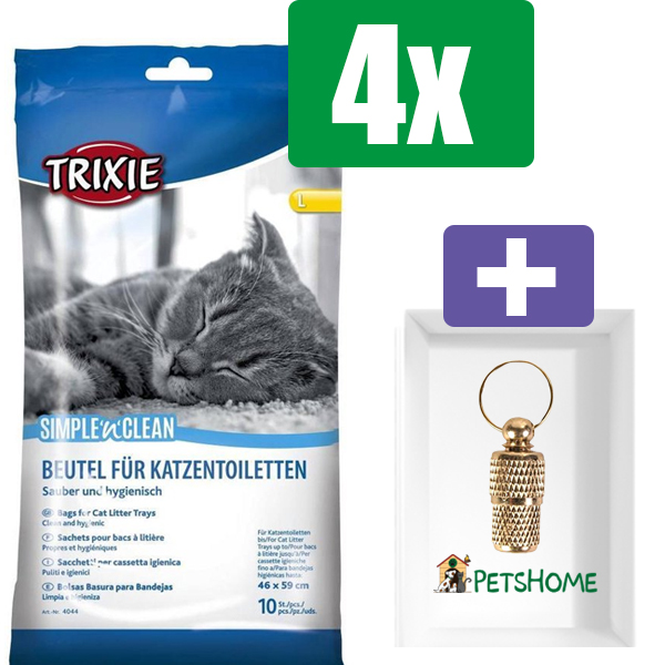 Trixie Kattenbakzakken – Simple’n’Clean – 10 ST 46X59 CM – 4 Stuks – Inclusief PetsHome Goudkleurige Adreskoker
