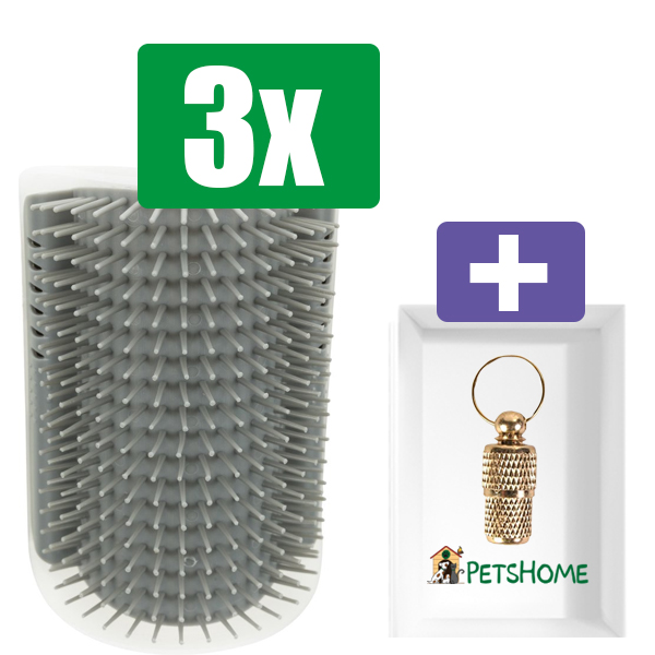 Trixie Massageborstel Muur Hoek Grijs – 8x13cm – 3 stuks – Inclusief PetsHome Goudkleurige Adreskoker