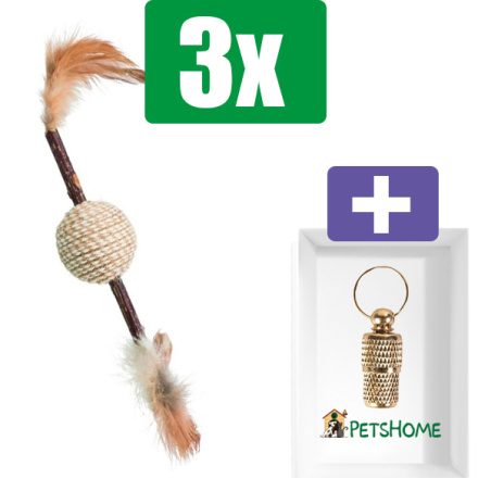 Trixie Matatabi – Spel met veertjes – 20 cm – 3 stuks – Inclusief PetsHome Goudkleurige Adreskoker