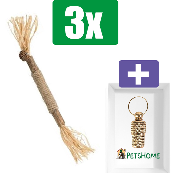 Trixie Matatabi – Stokje met fransjes – 24 cm – 3 stuks – Inclusief PetsHome Goudkleurige Adreskoker
