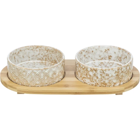 Trixie Set Voerbak / Waterbak Keramiek / Bamboe Wit / Natuur 2X300 Ml 30X6X15 Cm