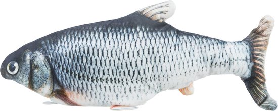 Dit wordt geheid het favoriete speelgoed van jouw kat! Deze zeer echt lijkende vis is gemaakt van pluche en kunststof. Wanneer de vis wordt aangeraden, spartelt hij een tijd lang onregelmatig, net als een echte vis: pas na 15 seconden inactiviteit stopt de vis met bewegen. De vis is voorzien van een belletje en catnip om nog interessanter te zijn voor jouw kat, zodat hij al snel favoriet zal worden. Eenvoudig op te laden door middel van USB!