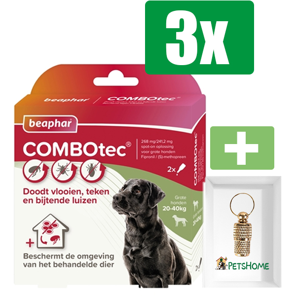 Beaphar Combotec Anti Teken- en Vlooiendruppels Hond 20-40 kg 2 pipetten – 3 Stuks – Inclusief PetsHome Goudkleurige Adreskoker