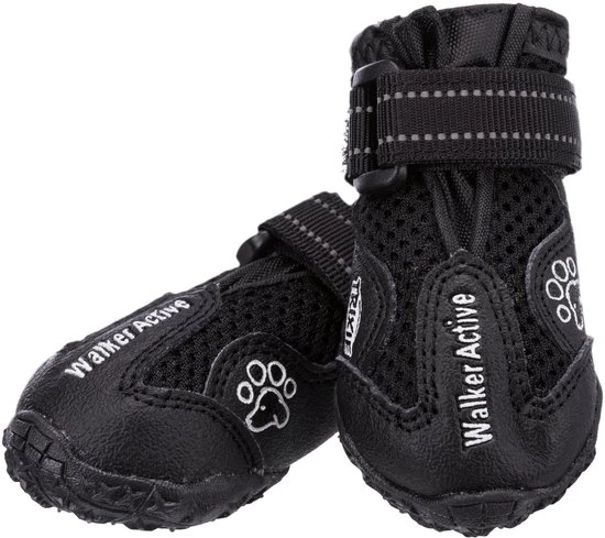 De Schoentjes Walker Active bevat 2 schoentjes, ze zijn zwart van kleur en zijn verkrijgbaar in verschillende maten, bijgevoegd een indicatie van de hondenrassen: