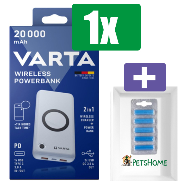 Varta Draadloze Powerbank – 20000 mAh – Inclusief PetsHome Geurstaafjes Fresh