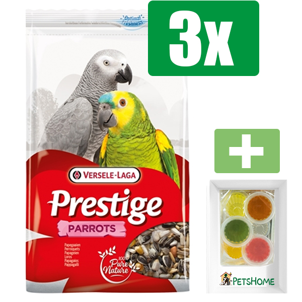 Versele-Laga Prestige Vogelvoer – Papegaaien – 1 KG – 3 Zakken – Inclusief 6 stuks PetsHome Fruitkuipjes