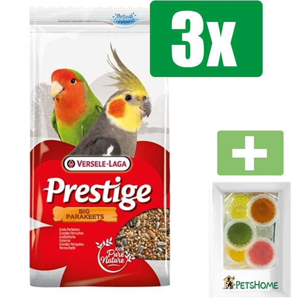 Versele-Laga Prestige Vogelvoer – Premium Grote Parkiet – 1 KG – 3 Zakken – Inclusief 6 stuks PetsHome Fruitkuipjes