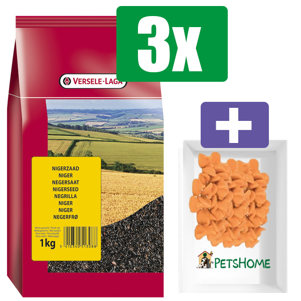 Versele Laga Voedermiddel Nigerzaad 1 kg – 3 Zakken – Inclusief 6 stuks PetsHome Fruitkuipjes