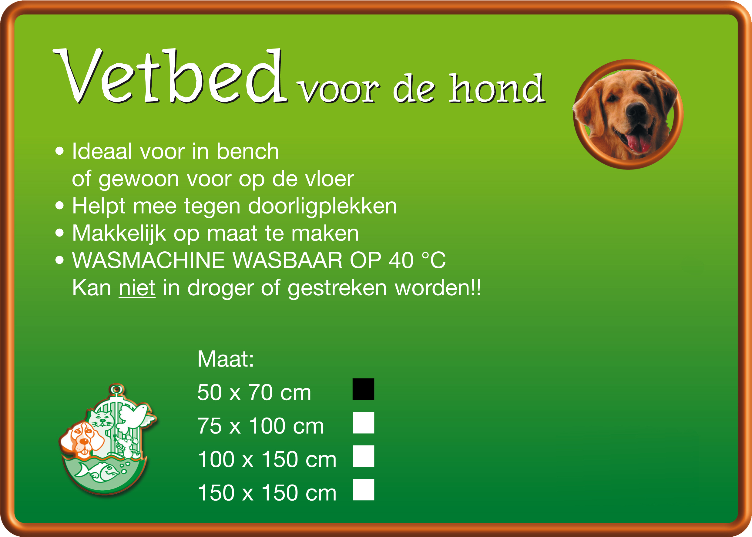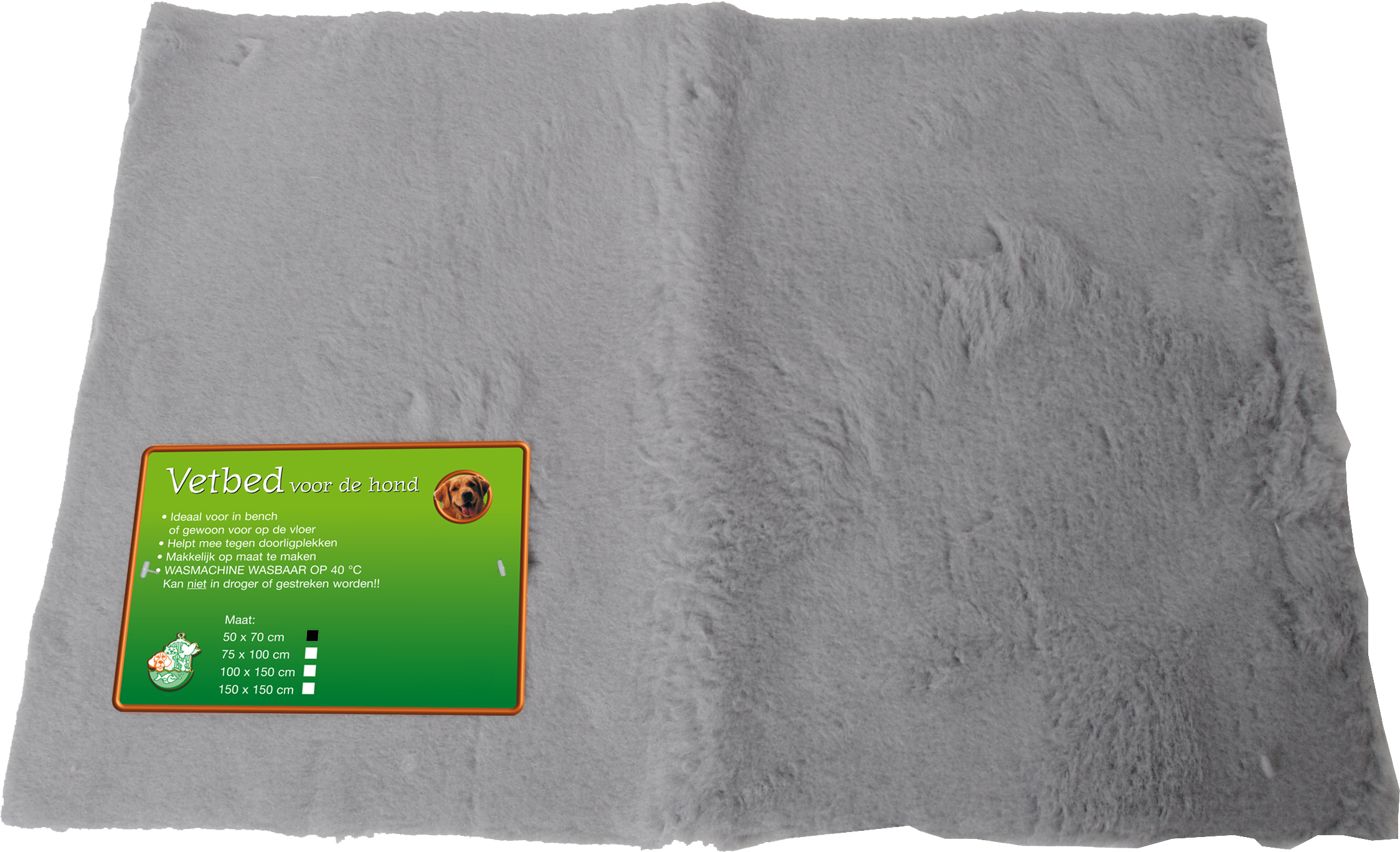 Een vetbed is een synthetische schapenvacht. Ideaal voor huisdieren van alle leeftijden, van piepjong tot stokoud. Te gebruiken in huis, auto, hondenmand etc. ’s Zomers heerlijk koel, ’s winters lekker warm. Het materiaal is lekker zacht en sterk. Verkrijgbaar in verschillende maten en in de kleuren beige en grijs.