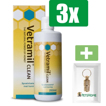 Vetramil Clean 250 ml – 3 stuks – Inclusief PetsHome Goudkleurige Adreskoker