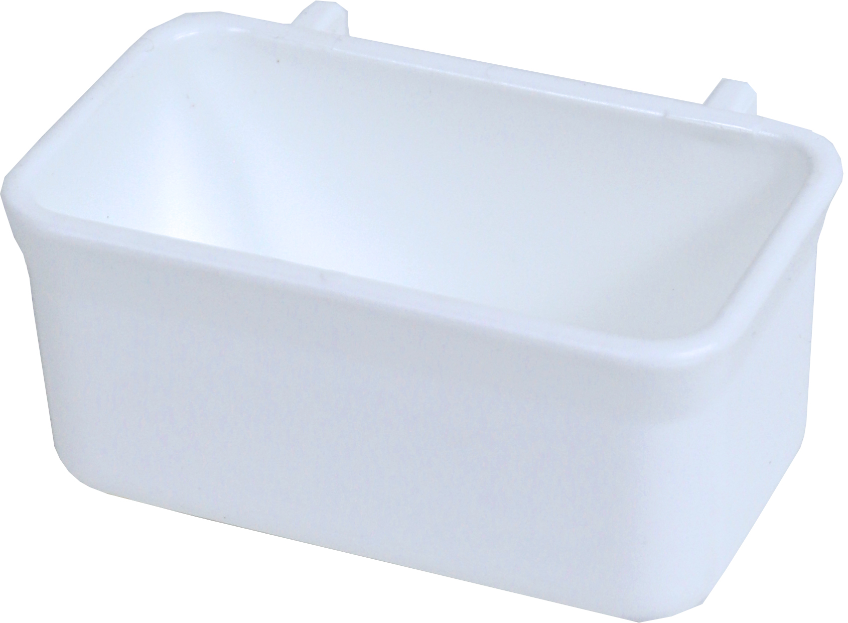 Plastic rechthoekig voerbakje 053 in de kleur wit. Afmeting: 10x6x4 cm.
