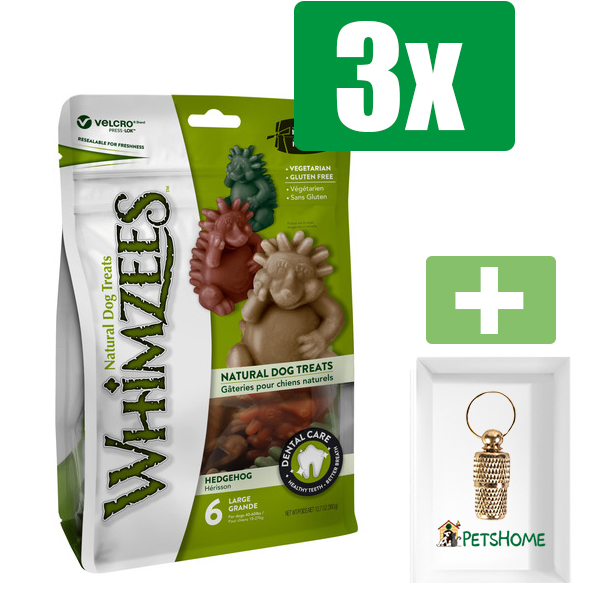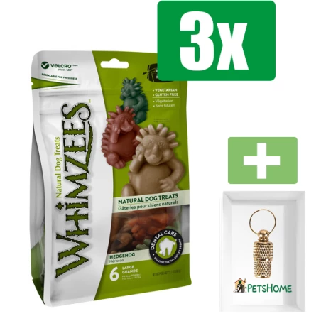 Whimzees Egel L – Kauwsnacks – Hond – 7,6cm – 6st – 3 Zakken – Inclusief PetsHome Goudkleurige Adreskoker