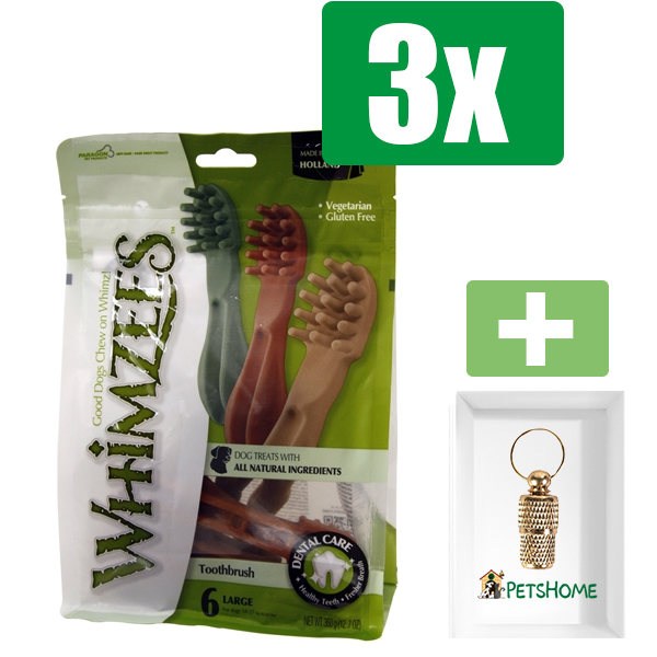 Whimzees Tandenborstel Star L – Kauwsnacks – Hond – 14,5cm – 6st – 3 Zakken – Inclusief PetsHome Goudkleurige Adreskoker
