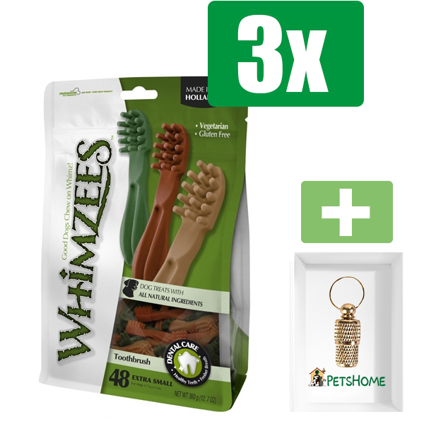 Whimzees Tandenborstel Star XS – Kauwsnacks – Hond – 6,5cm – 48st – 3 Zakken – Inclusief PetsHome Goudkleurige Adreskoker