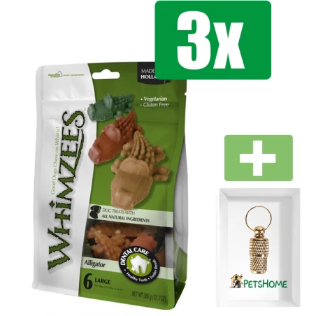 Whimzees Tandenborstel Start M – Kauwsnacks – Hond – 8,7cm – 12st – 3 Zakken – Inclusief PetsHome Goudkleurige Adreskoker