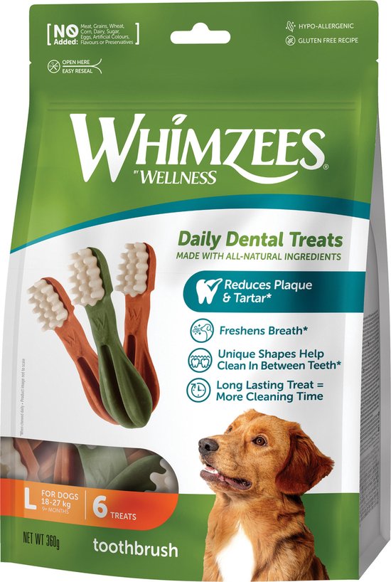 Whimzees toothbrush assorti large, 6 stuks in valuebag
