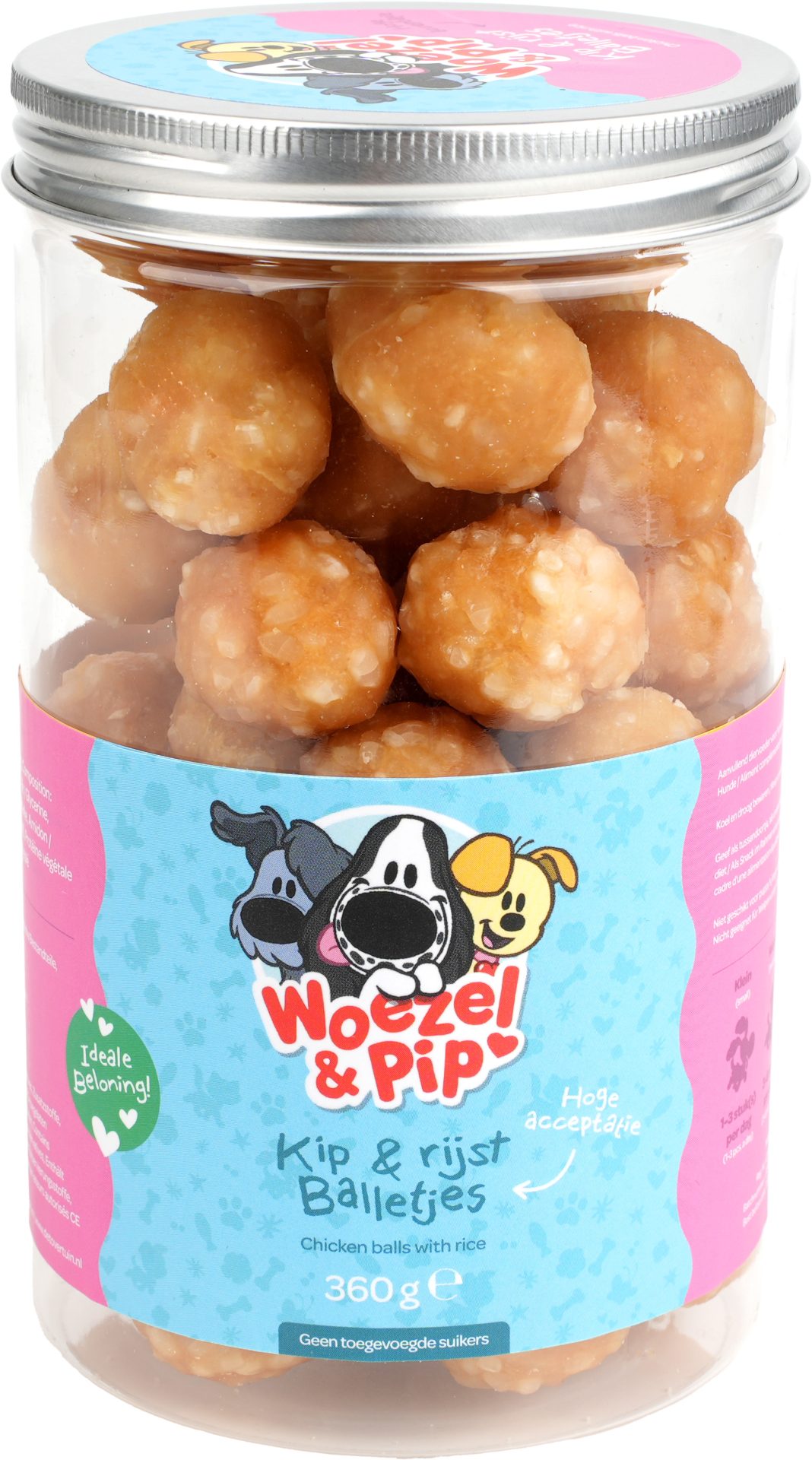 Of je nu een wandeling afsluit of gewoon een momentje samen viert – met deze kippenballen geef je jouw hond een traktatie vol liefde, uit de magische wereld van Woezel & Pip.