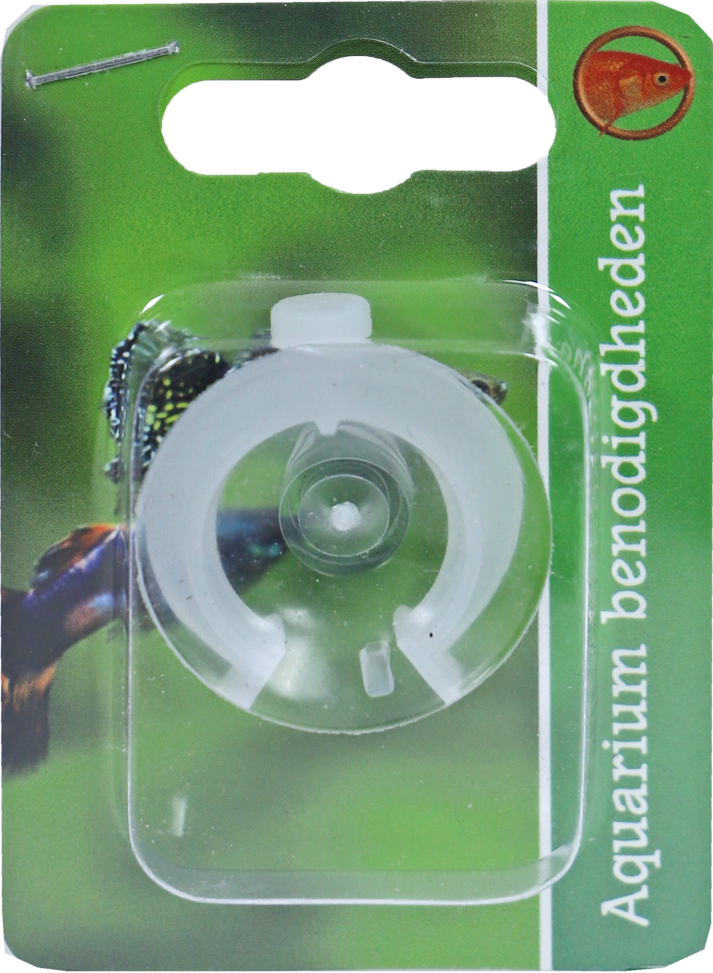 Zuignap met klem. (20-24 mm) en bevestig deze in de zuiger. U kunt deze gebruiken voor het bevestigen van bijvoorbeeld slangen, verwarmers, thermometers op andere attributen op een gladde ondergrond. Geschikt voor zowel zoet- als zeewater.